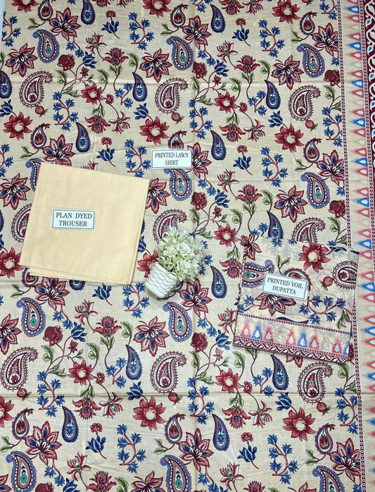 3 pcs womens unstiched lawn printed suit