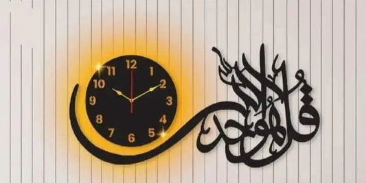 Islamic Calligraphy Analogue Wall Clock - 1 Pc Stylish Design With Light